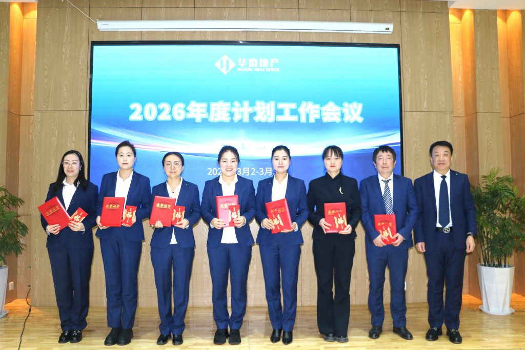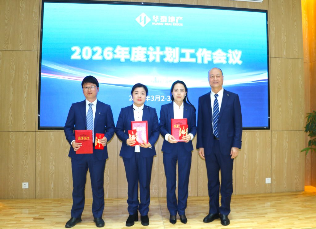 3月2日8:50会议正式开始,本次会议由华泰公司办公室主任姜文娟主持,她首先简要介绍了集团2026年度计划工作会议召开的有关情况。紧接着会上首先由营销总监彭鹏系统地宣贯解读了王斌总裁《攻坚去化 降本增效 筑牢生存根基 深化改革 拓新提质 激活发展动能》的工作报告及会议精神,由工程总监史宝龙全文传达了总裁在会上的总结讲话,由公司副总经理郭帅宣读了咸阳公司与集团签订的2026年度目标管理责任书及考核办法。紧接着由姜文娟主任宣读了华泰地产2025年度双先表彰决定,公司共有工程技术管理部张景鹏等六名同志获得了华泰地产2025年度“优秀员工”,郑晓云获得了2025年度“销售状元”,总经理办公室姜文娟和策划推广部冯锐娜两位经理获得了“优秀管理者”,工程技术管理部和财务管理部获得了“先进部门”。公司各级领导先后为“双先”获奖者颁发了荣誉证书。